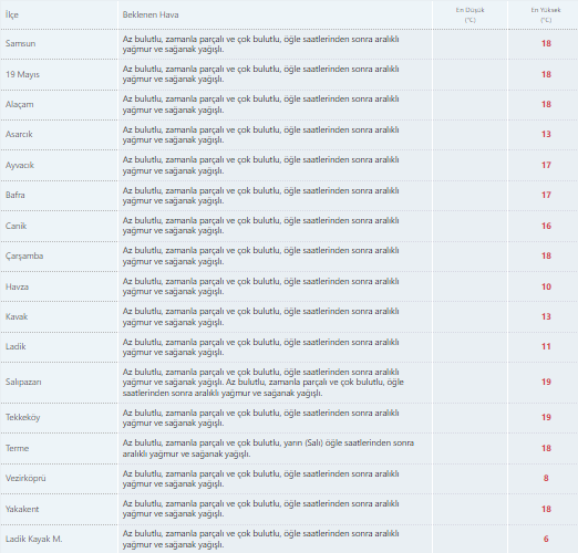 SAMSUN MERKEZ VE İLÇELERDE HAVA DURUMU
