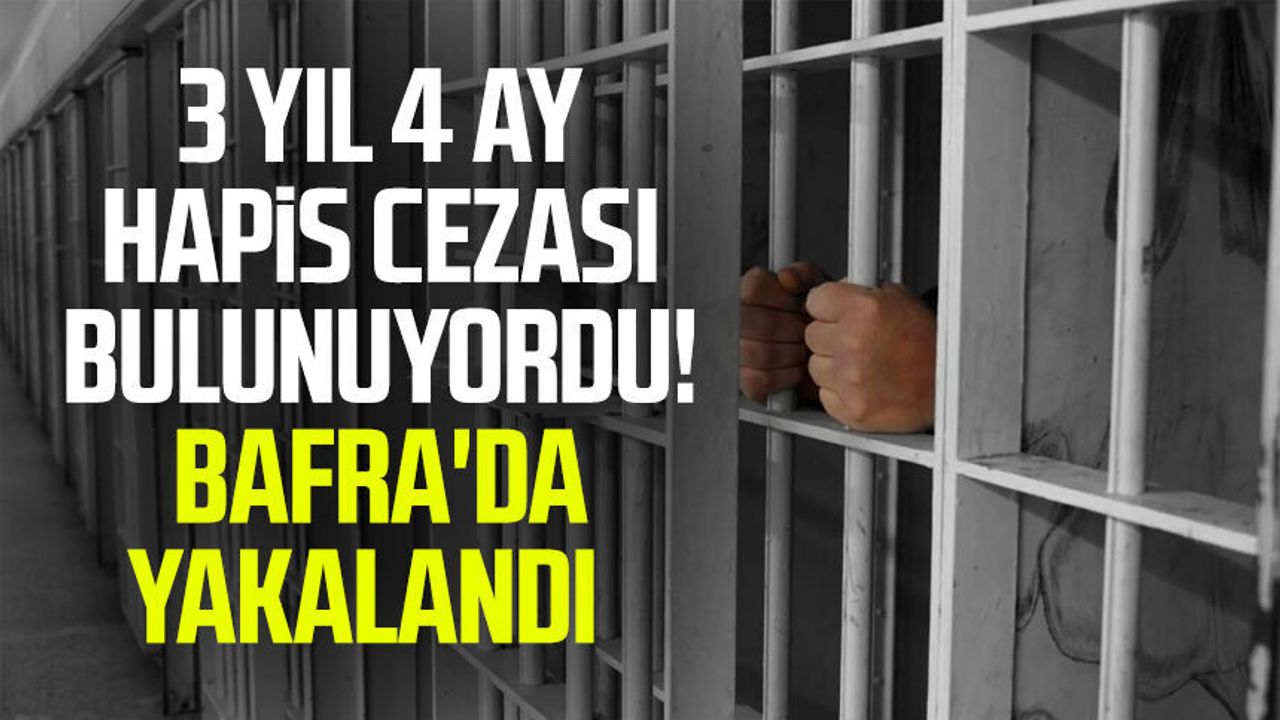 'Kişiyi hürriyetinden yoksun bırakma' suçundan 3 yıl 4 ay hapis cezası bulunan B.E.(36), İlçe Emniyet Müdürlüğü Asayiş Büro Amirliği ekiplerince Samsun'un Bafra ilçesi Altınkaya Mahallesi'nde yakalanarak gözaltına alındı.