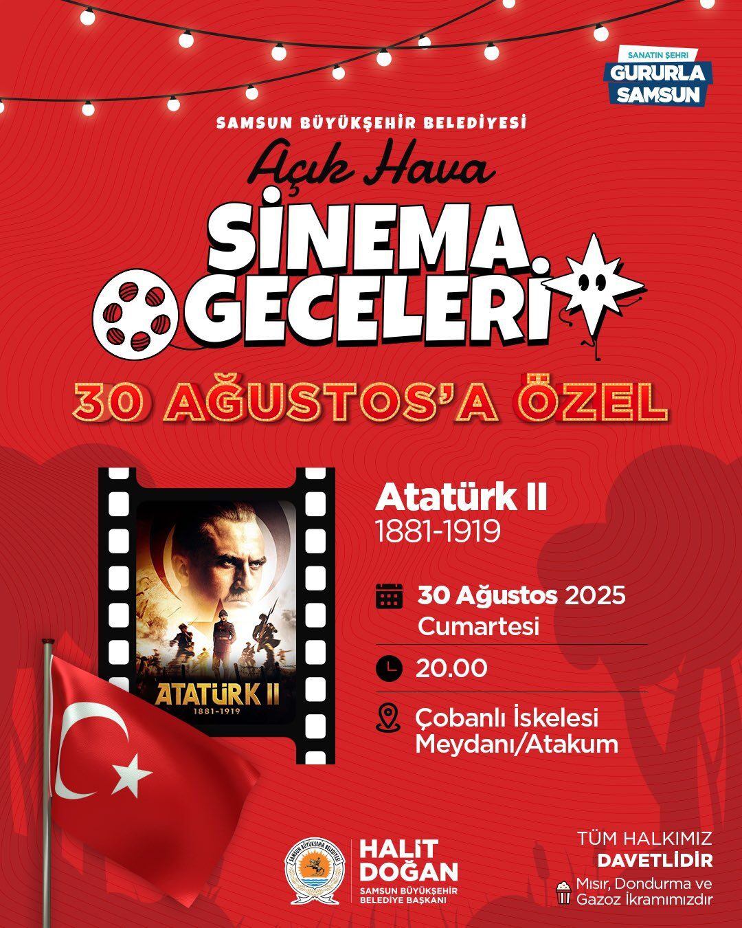 Etkinlik, 30 Ağustos Cumartesi akşamı saat 20.00’de Atakum Çobanlı İskelesi’nde gerçekleşecek. Samsunlular, tarihi filme açık havada eşsiz bir atmosferde tanıklık edecek.