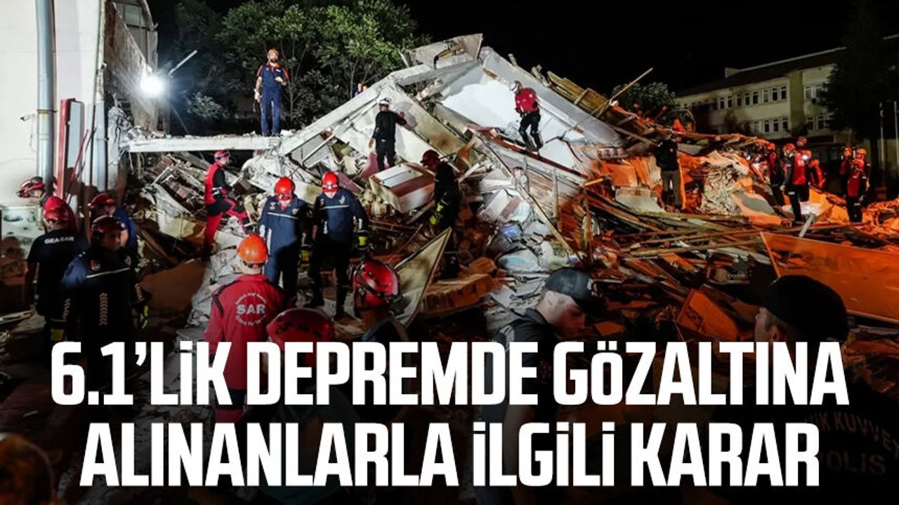 Merkez üssü Balıkesir'in Sındırgı ilçesi önceki gün meydana gelen 6,1 büyüklüğündeki depremde, 1 kişinin hayatını kaybettiği ve 5 kişinin yaralandığı Camikebir Mahallesi'nde kaymakamlığın karşısında bulunan 4 katlı binanın yıkılmasına ilişkin gözaltına alınan binanın müteahhidi S.S. ve sahibi İ.E.K'nin emniyetteki işlemleri tamamlandı.