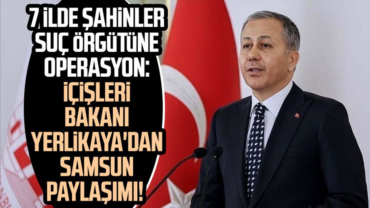 İçişleri Bakanı Ali Yerlikaya Samsun'un da aralarında bulunduğu suç örgütü operasyonuna ilişkin, "İstanbul Organize Suçlarla Mücadele Şube Müdürlüğümüzce kamuoyunda Şahinler olarak bilinen, liderliğini Mehmet Şahin'in yaptığı Organize Suç Örgütü üyelerine yönelik operasyon düzenlendi. Şüphelileri yakalamak için İstanbul, İzmir, Muğla, Ankara, Ordu, Bartın, Samsun illerinde 54 adrese yönelik eş zamanlı operasyon gerçekleştirildi. 41 şüpheli şahıs yakalandı. Operasyonda 16 ruhsatsız adet tabanca ve 660 adet fişek, 2 av tüfeği, 3 çelik yelek ile muhtelif miktarda uyuşturucu ve nakit para ele geçirildi. Operasyonları düzenleyen kahramanlarımızı tebrik ediyorum. Allah ayağınıza taş değdirmesin. Aziz Milletimizin duaları sizlerle. Hiçbiriniz yüce Türk adaletinden kaçamayacaksınız! Ülkemizin huzur ve güvenliği için canla başla çalışmaya devam edeceğiz." dedi.
