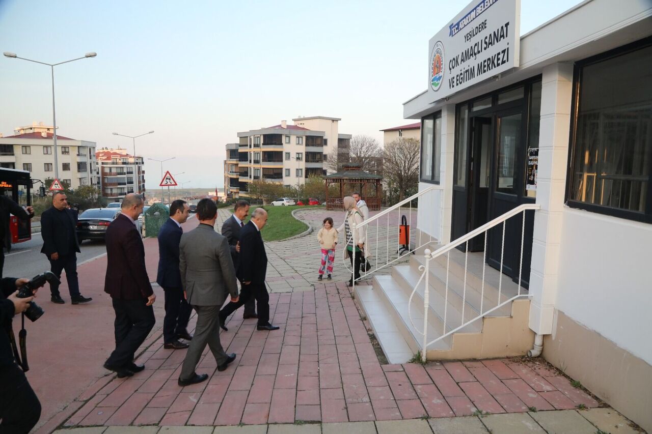 Atakum Belediye Başkanı Av. Cemil Deveci, Vali Doç. Dr. Dağlı, Vali Yardımcısı Şevket Cinbir, Atakum Kaymakamı Kemal Yıldız ve Atakum İlçe Milli Eğitim Müdürü Mehmet İrfan Yetik ile ilçede belediyeye ait binalarda inceleme yaptı. Atakum Belediyesi düğün salonu ile Yeşildere Çok Amaçlı Sanat ve Eğitim Merkezi’ni ziyaret eden heyete Belediye Başkanı Deveci, tam destek verdi. Başkan Deveci, kadınlara yönelik yapılacak olumlu her işi desteklediklerini ve bu projede de gerekli desteği vereceklerini söyledi.