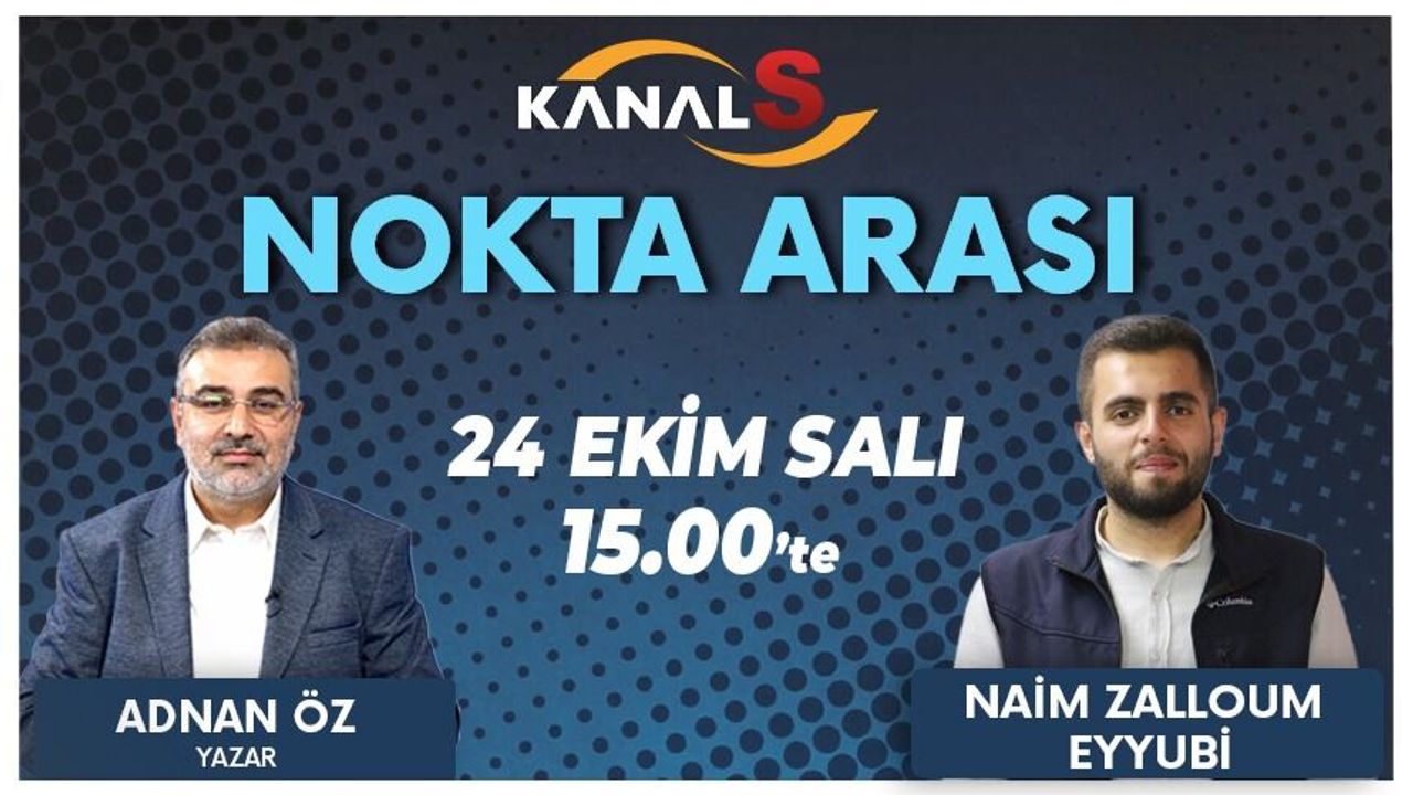 Naim Zalloum Eyyubi'nin konuk olduğu Adnan Öz’ün moderatörlüğünde #NoktaArası programı 24 Ekim Salı günü 15.00’te Kanal S ekranlarında!