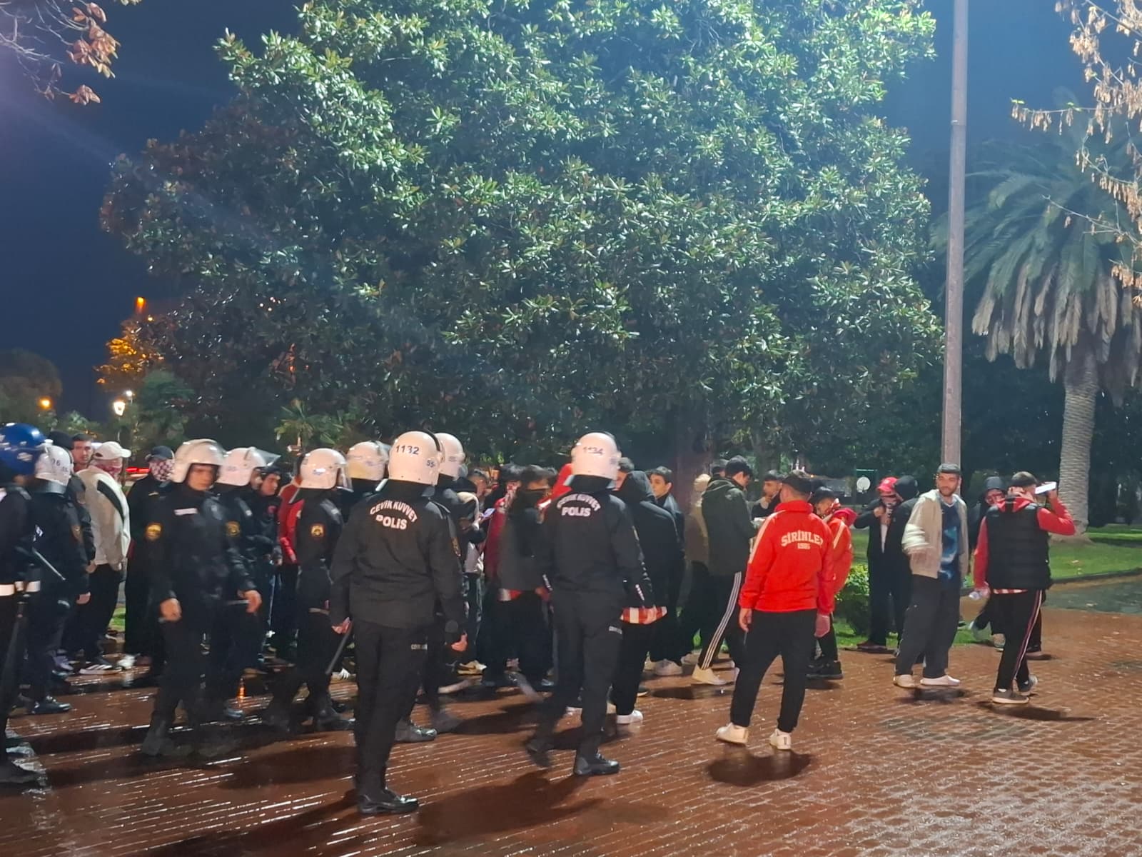 Samsunspor–AEK maçı öncesi taşkınlık yaşanmaması için polis ekipleri, Samsunspor taraftarını kontrollü şekilde Anıt Park yönüne yönlendirdi. AEK taraftarını taşıyan otobüslerin bölgeden ayrılmasının ardından, Samsunspor taraftarının da alandan çıkmasına emniyet tarafından izin verildi.