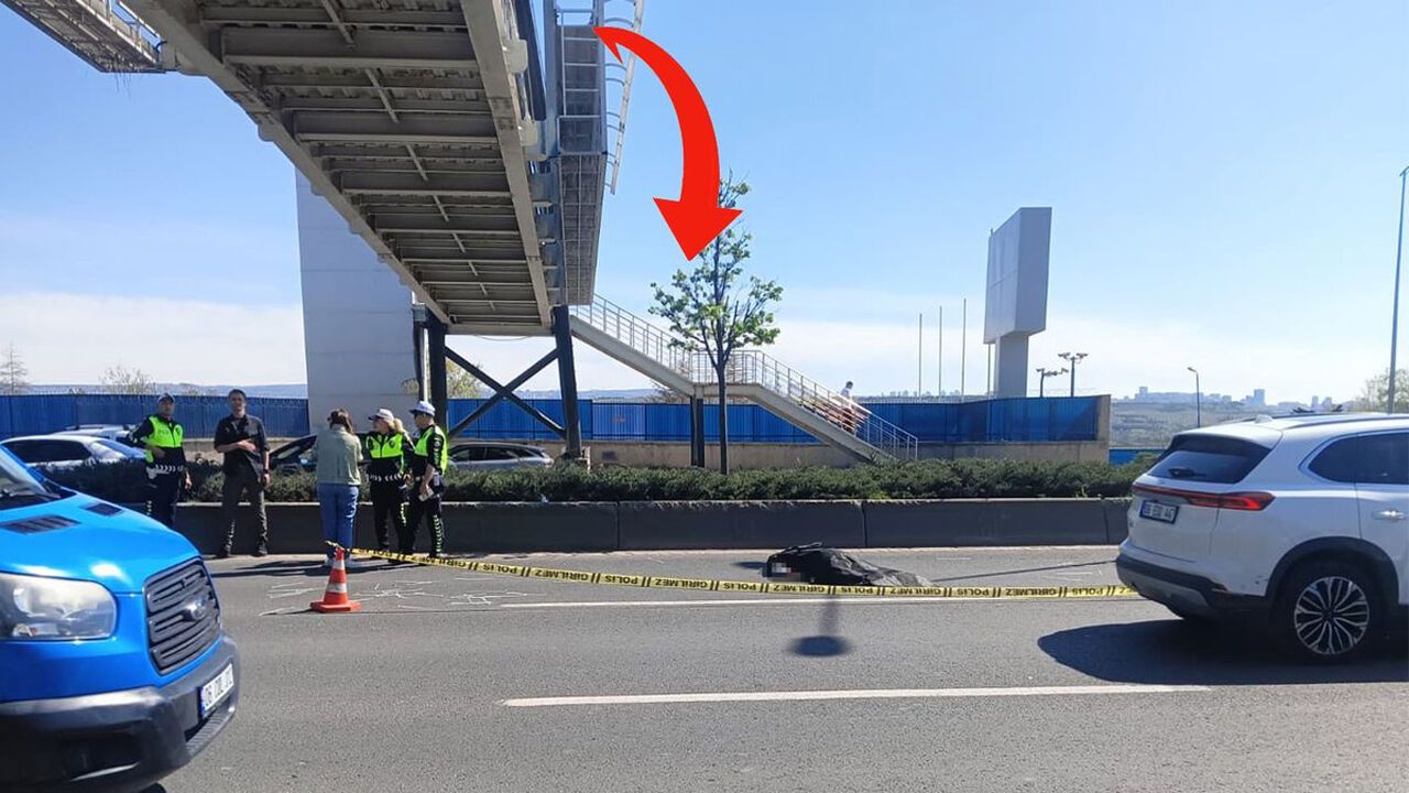Öte yandan Vedat Gürbüz’ün üst geçitten düştüğü anlar, yoldan geçen bir aracın kamerasına saniye saniye yansıdı. Görüntülerde Gürbüz’ün yoğun trafikte akan yola düştüğü anlar yer aldı.
