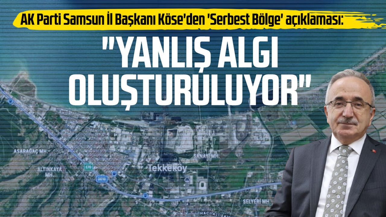 - Samsun, 29 Ekim 2025 16:00: AK Parti Samsun İl Başkanı Mehmet Köse, serbest bölge üzerinden yanlış algı oluştuğunu açıkladı.