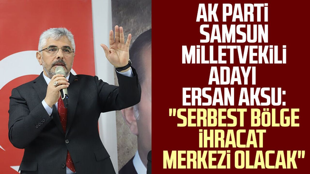 Seçim çalışmalarında Cumhurbaşkanı Recep Tayyip Erdoğan'ın imzasıyla Samsun'da 10 bin ilave istihdam ve 1,5 milyar dolar ihracat hedefiyle kurulan Orta Karadeniz Serbest Bölgesi hakkında değerlendirmelerde bulunan Aksu, "Samsun'un 2002 yılında 36 milyon dolar ihracat kapasitesi vardı. Hükümetlerimiz dönemlerinde kurulan OSB'ler ve yatırımcılara sağlanan imkanlarla 2022 yılında ihracat rakamlarımız 1 milyar doları aştı. Samsun'da bulunan ve içinde 23 firmanın yer aldığı ve 2022 yılında 157 milyon dolar ihracatın gerçekleştiği Samsun Serbest Bölge yüzde 100 doluluk oranına ulaştı. Büyüme alanı olmadığı için Samsun'da ikinci serbest bölgenin kurulması kaçınılmaz bir durum almıştı" dedi.