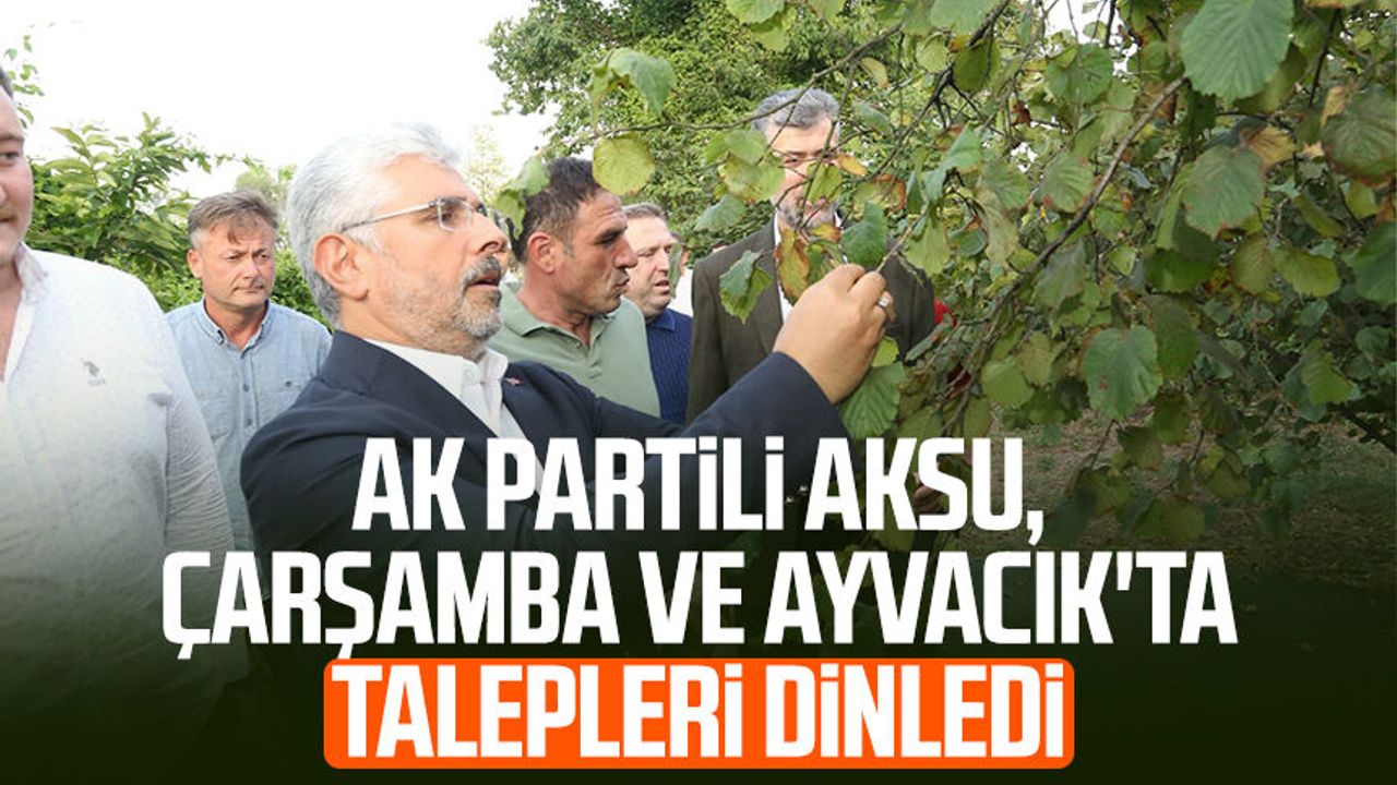 AK Parti Samsun Milletvekili Av. Ersan Aksu, Çarşamba ve Ayvacık ilçelerinde partisinin teşkilatıyla buluştu; esnaf odaları, STK temsilcileri ve vatandaşlarla bir araya gelerek talepleri dinledi. Fındık hasadı için bahçeye giren çiftçilere “bereketli sezon” diledi, özel bir eğitim kurumunu ziyaret etti.