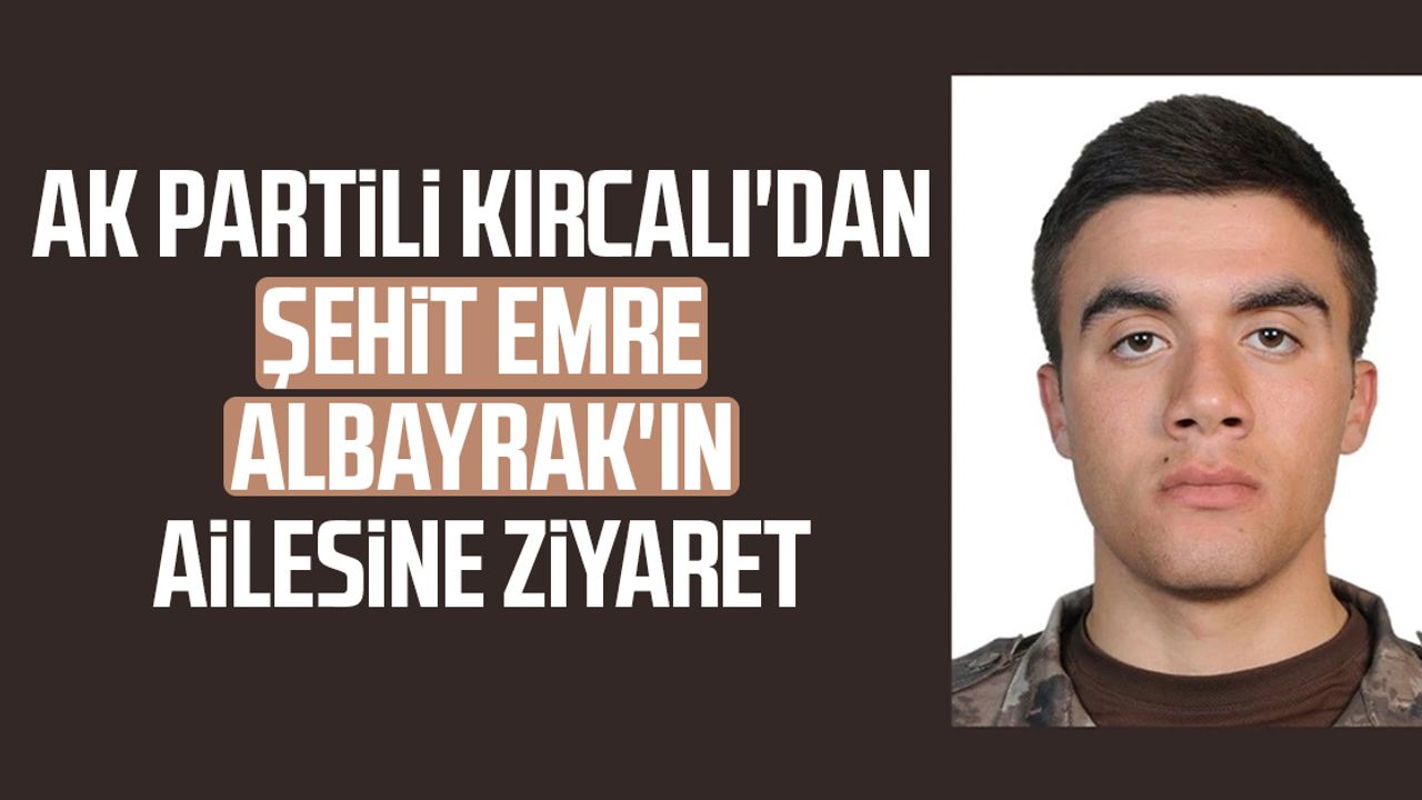 Kırcalı, sosyal medya hesabından yaptığı paylaşımda şehit Emre Albayrak’ı rahmetle anarak, “İstanbul’da Narkotik ekiplerinin operasyonunda şehit olan Özel Harekat Polisi hemşehrimiz Emre Albayrak’ın baba ocağını İlçe Başkanımız Erkan Şahin ile ziyaret ederek taziyelerimizi iletip, Regaib kandillerini tebrik ettik. Şehidimizin ruhu şad, mekanı cennet olsun." ifadelerini kullandı.