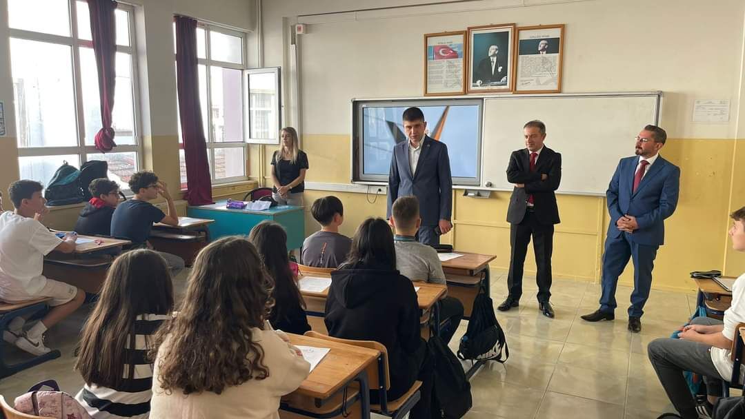 Alaçam Kaymakamı Fatih Kayabaşı, Karayolları Fatih Kolin Ortaokulu'nu ziyaretinde öğrenci ve öğretmenlerle bir araya geldi.