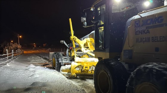 Karla mücadele çalışmalarını inceleyen Alaçam Belediye Başkanı Ramazan Özdemir, Kızlan mevkisinde kar yağışı bulunduğunu belirterek, "Yaklaşık 25 santimetre kar mevcut. Alaçam ve Büyükşehir belediyesi ekipleri sahada yol açma çalışmalarına devam etmektedir. Kapalı yolumuz bulunmamaktadır. Hayat normal akışıyla devam etmektedir. İnşallah sezonu kazasız belasız şekilde tamamlarız." ifadelerini kullandı.