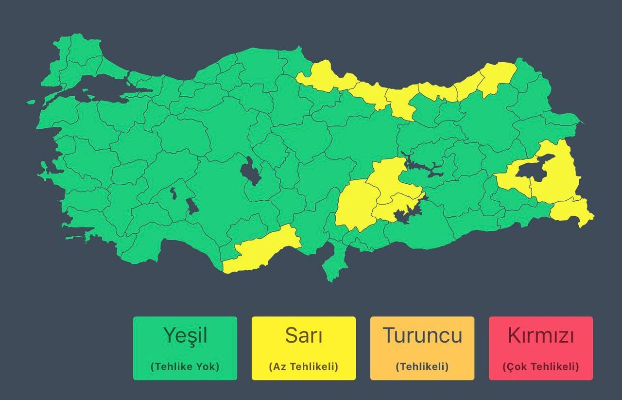 Ayrıca, Hakkari, Van’ın güneyi ve Bitlis’in doğusunda batı ve güneybatı yönlerden kuvvetli rüzgar ve kısa süreli fırtına beklenirken, Sinop, Samsun, Ordu ve Giresun’da batı ve kuzeybatı, Trabzon, Rize ve Artvin kıyılarında ise batı ve güneybatı yönlerden kuvvetli rüzgar ve kısa süreli fırtına etkili olacak.