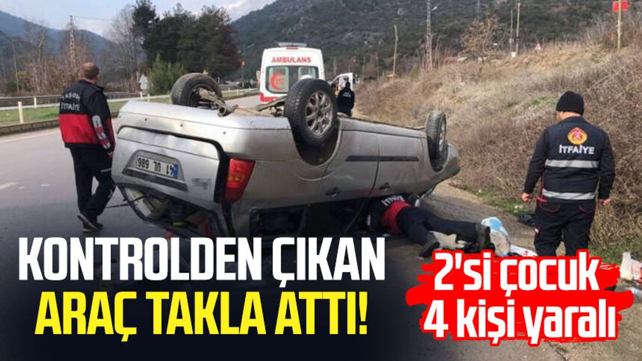 Takla atarak sürüklenen otomobilin içinde bulunan sürücü ve çocukları O.Z.(9), M.Z.(15) ile eşi S.Z.(46) yaralandı.