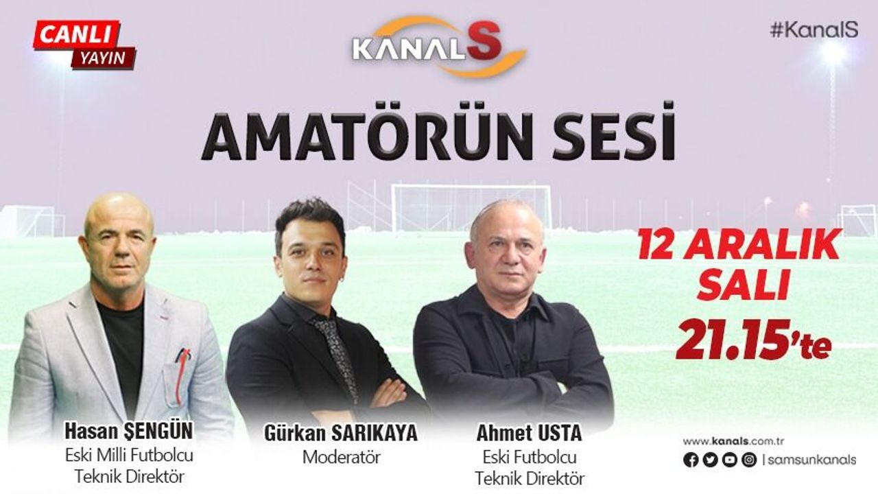 Samsun amatörü ve Bölgesel Amatör Lig'in heyecanı Eski Futbolcu, Teknik Direktör Ahmet Usta ve Eski Milli Futbolcu, Teknik Direktör Hasan Şengün'ün (Dobi Hasan) yorumlarıyla Amatörün Sesi Gürkan Sarıkaya'nın moderatörlüğünde her salı 21.15'te Kanal S ekranlarında.