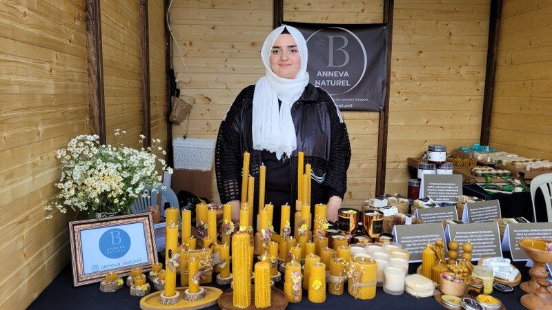Beş yıl önce oğlunun doğumunun ardından doğal ürün üretimini yönelen Beyza Nur Kanca, kendisinin yaptığı el yapımı krem ve dekoratif mumları pazarların yanı sıra internet üzerinden Türkiye geneline satıyor. Kanca, anne olduktan sonra oğlunun hassas cildi için doğal ve katkısız pişik kremi üretmeye karar verdiğini söyledi.