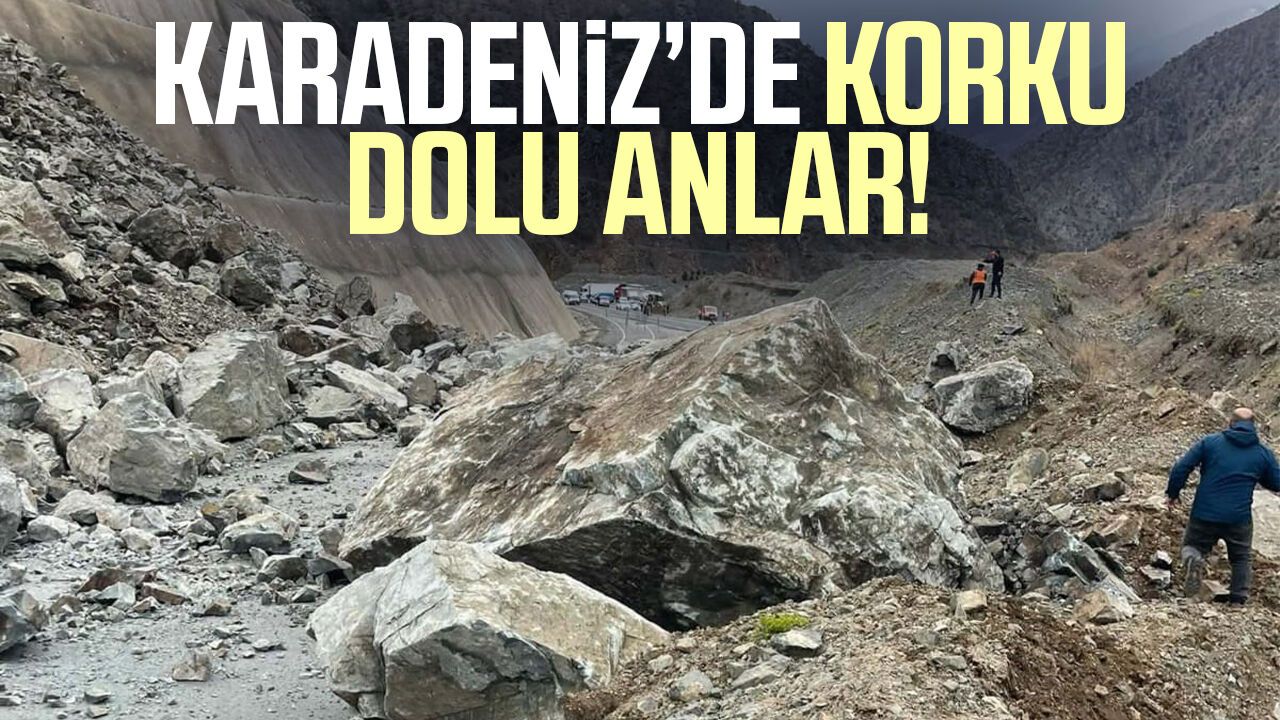 - Yamaçtan kopan toprak ve kaya parçaları karayoluna düşerek trafiği durdurdu.