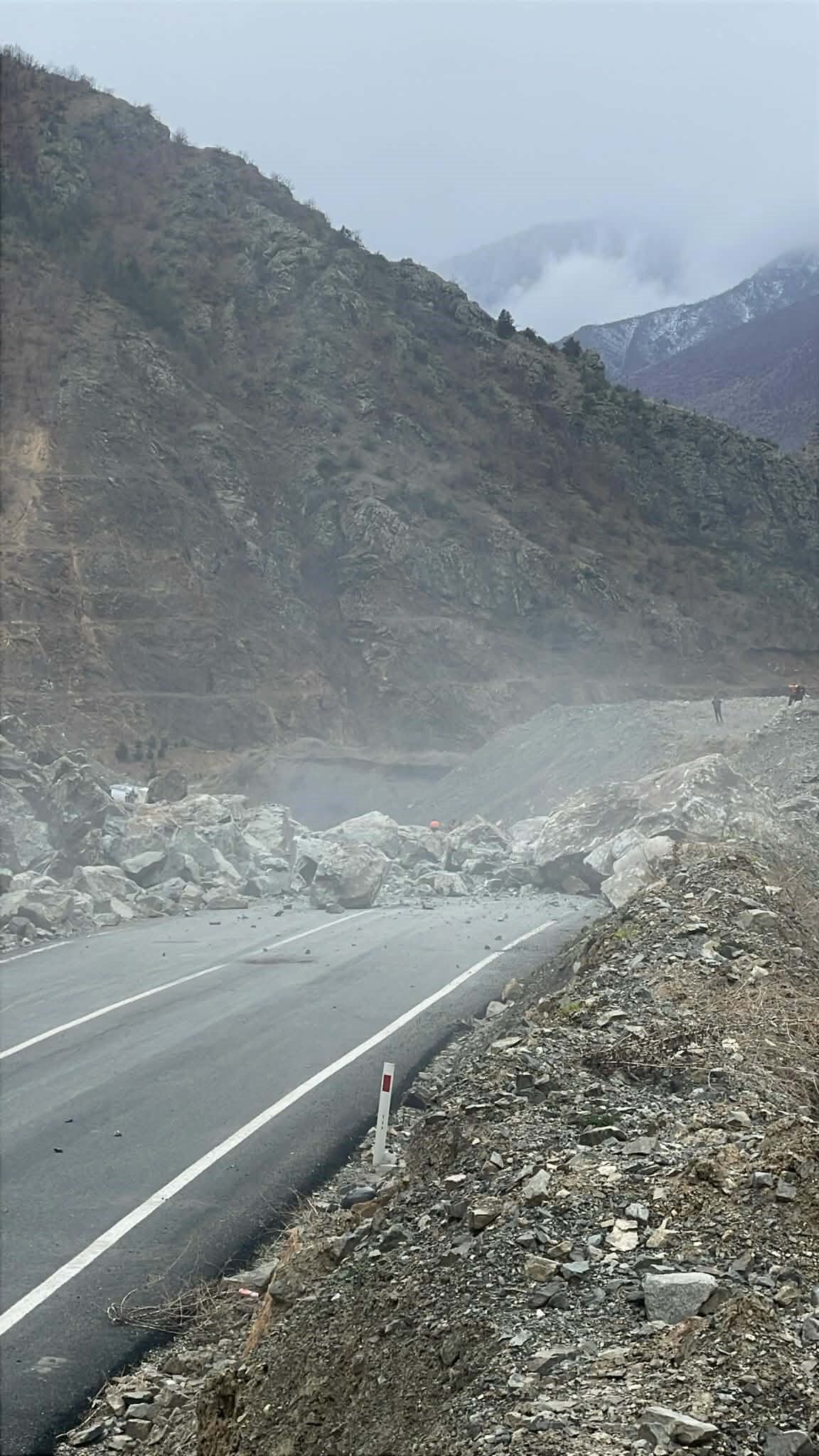 - Karayolları ekipleri yola düşen toprak ve kaya parçalarını kaldırdı.