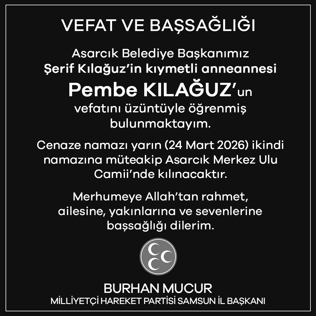 MHP Samsun İl Başkanı Burhan Mucur da yayımladığı mesajla başsağlığı dileğinde bulundu.