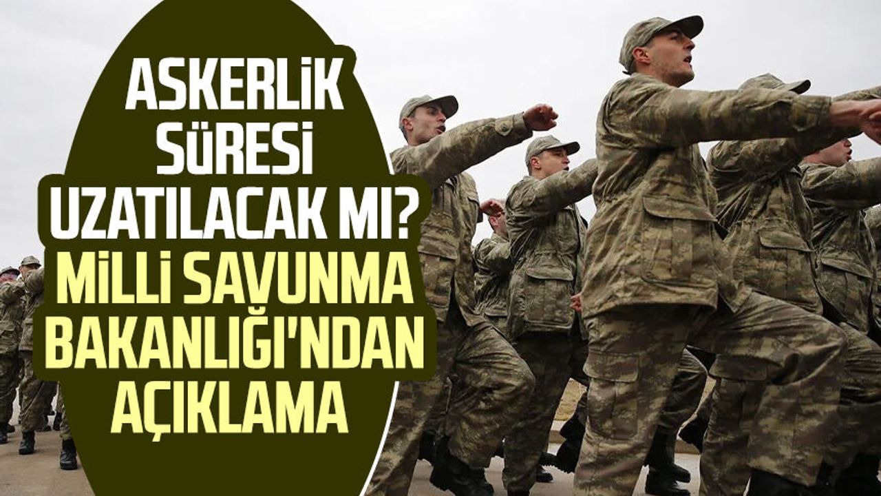 Milli Savunma Bakanlığı, askerlik süresinin uzatılacağı iddialarına ilişkin, "Askerlik hizmet süresinin uzatılmasına yönelik yapılan bir çalışma yoktur." açıklamasında bulundu.