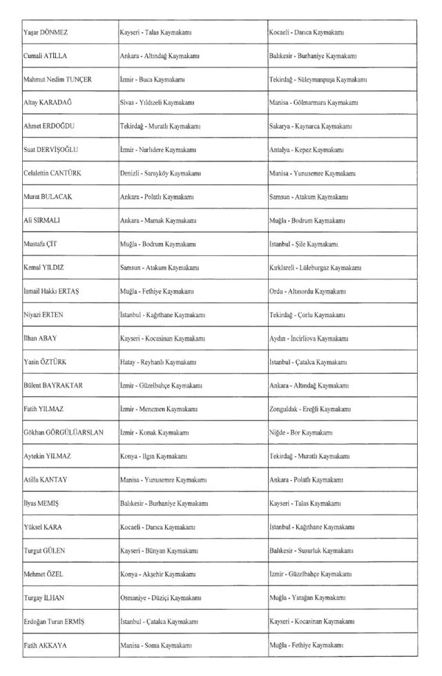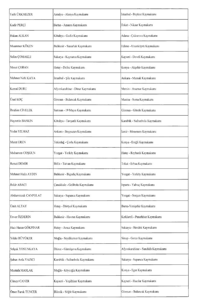 Samsun Atakum Kaymakamı Kemal Yıldız ise Kırklareli'nin Lüleburgaz ilçesine atanırken, Atakum’daki boşalan koltuğa Ankara Polatlı Kaymakamı Murat Bulacak getirildi.