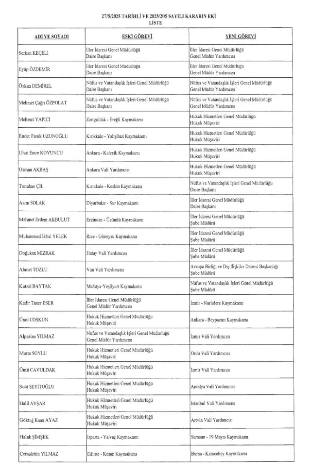 Isparta Yalvaç Kaymakamı Haluk Şimşek, Samsun 19 Mayıs Kaymakamlığı’na atanırken; mevcut 19 Mayıs Kaymakamı İbrahim Civelek, Giresun’un Görele ilçesine kaymakam olarak görevlendirildi.