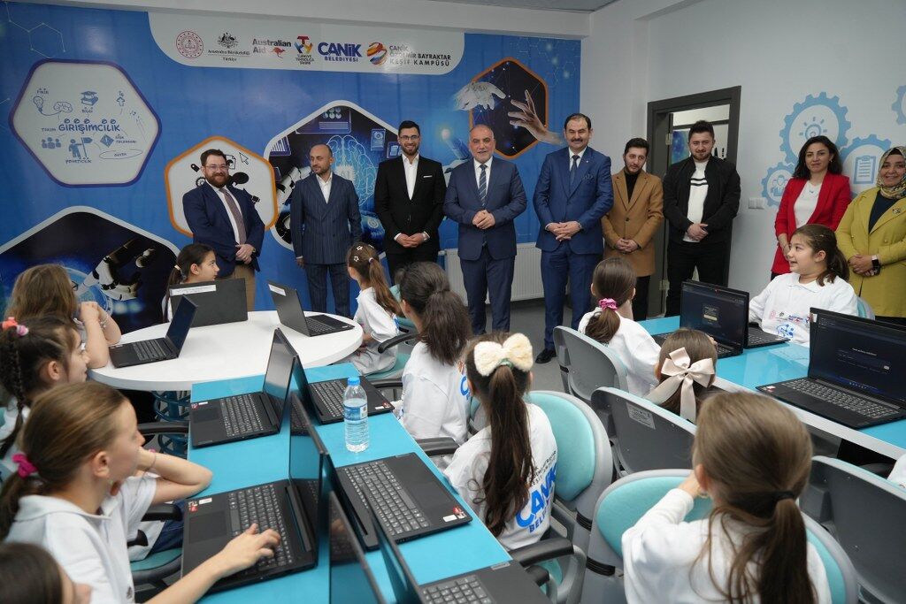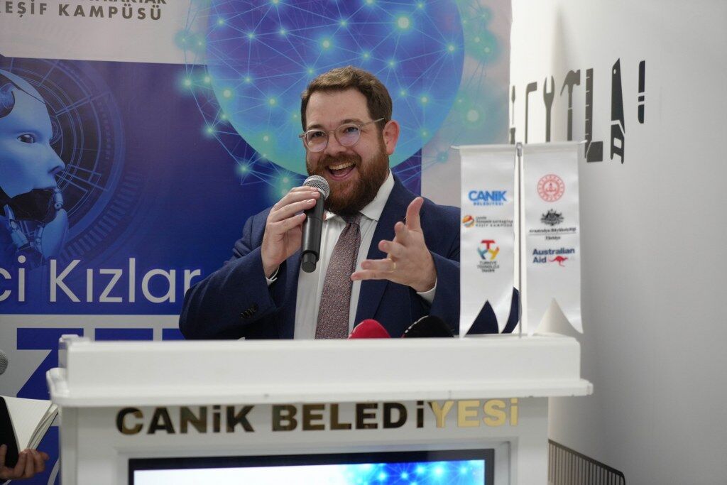 Gelişen teknolojiye ayak uyduran projeleri hayata geçirdiklerini ifade eden Canik Belediye Başkanı İbrahim Sandıkçı, "Keşif Kampüsümüz 3 yıl önce hayata geçti. Ulusal bazda Türkiye'nin ilklerinden biri oldu. Kampüsümüze ismini verdiğimiz Özdemir Bayraktar'a Allah'tan rahmet diliyorum. Onun oğullarının T3 Vakfı ile Türkiye'de teknoloji hamlesi şahlandı. Canik Özdemir Bayraktar Keşif Kampüsü'nü 3 ayda tamamladık. Bugün gelinen noktada geçen ay Sanayi ve Teknoloji Bakanı Mehmet Fatih Kacır'ın elinden 'Türkiye'nin en iyi keşif kampüsü' ödülünü aldık. Bugüne kadar 150 binin üzerinde öğrenciye burada eğitim verdik. Burası uygulama sınavla aldığımız öğrencilerin 2 yıl eğitim gördüğü bir yer. Eğitim verirken dünya çapındaki projeleri de takip ediyoruz. Avustralya Büyükelçiliği'nin kızlarımıza yönelik bu desteğini görünce arkadaşlarımız projeyi yazdılar. Proje, konsolosluk tarafından yüksek puan aldı. Doğru şeyler yaptığınızda, mesafe 10 bin kilometrenin üzerinde de olsa doğruda buluşabiliyorsunuz. Yeter ki doğru olsun, yaptığımız işler geleceği ve insana dokunur olsun. Temel gayemiz var. Değişen bir dünyada yaşıyoruz. Hızla değişen dünyaya ayak uydurmak için bu okulu açtık. Dünyadaki devletlerin halkını ve geleceği kurtarma anlamında bu tür yatırımların çok değerli olduğunu düşünüyorum. Desteklerimizden dolayı konsolosluğumuza şükranlarımıza sunuyorum. İnşallah daha büyük projelerde de bir araya geliriz" dedi.