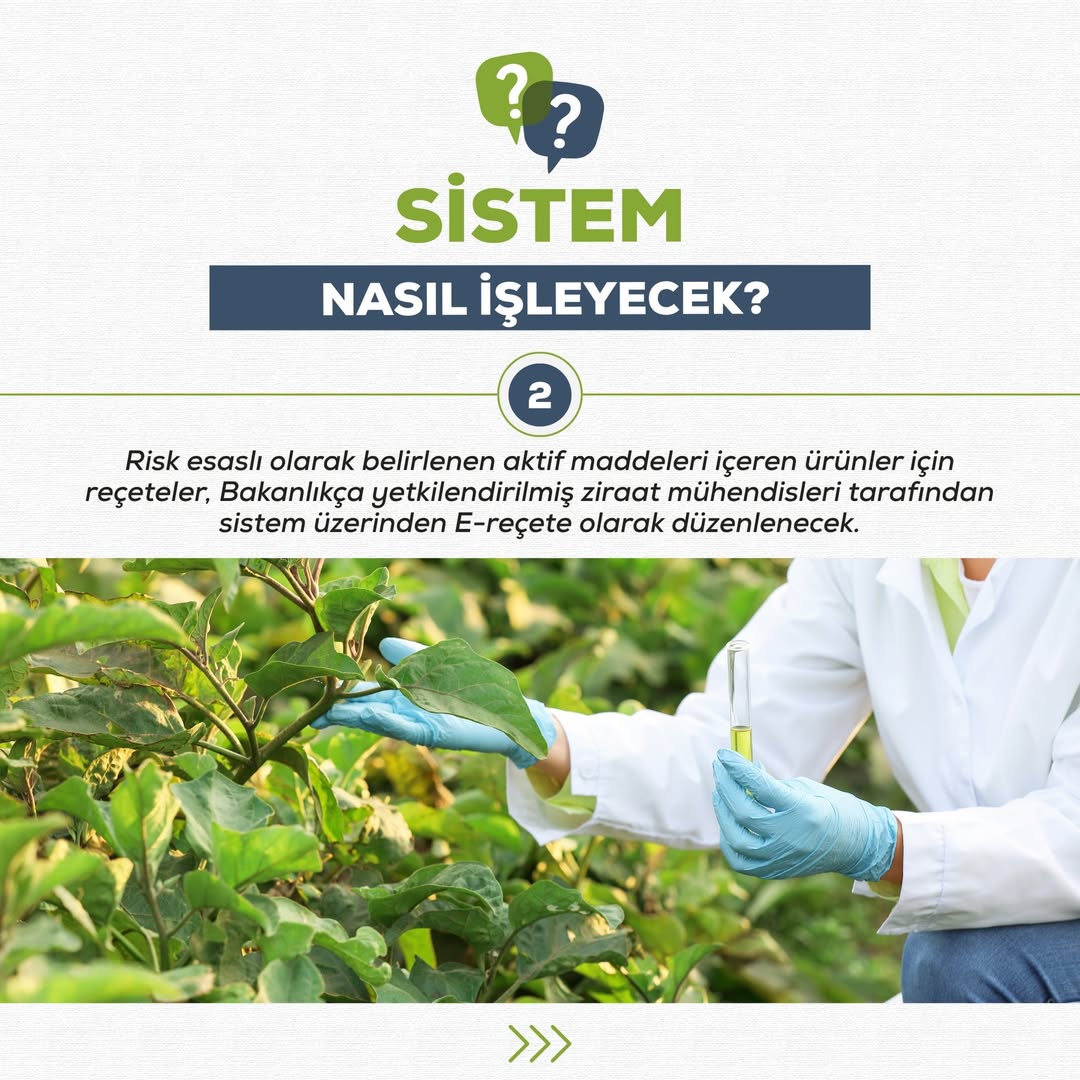 "Bitki koruma ürünü reçetesi, Bakanlığımızca risk esaslı olarak belirlenecek olan aktif maddeler için, yetkilendirilmiş bitki koruma ürünü reçete yazma yetki belgesine sahip ziraat mühendisi tarafından, kayıtlı ürün ve alan bilgileri dikkate alınarak sistem üzerinden elektronik olarak yazılabilecek. Bakanlığımız kayıt sistemlerine kaydının yapılması mümkün olmayan üretim yerleri için bu ürünlerin temininde herhangi bir mağduriyet yaşanmaması amacıyla il veya ilçe müdürlüklerince oluşturulacak taahhüt kaydıyla satış yapılabilecek."