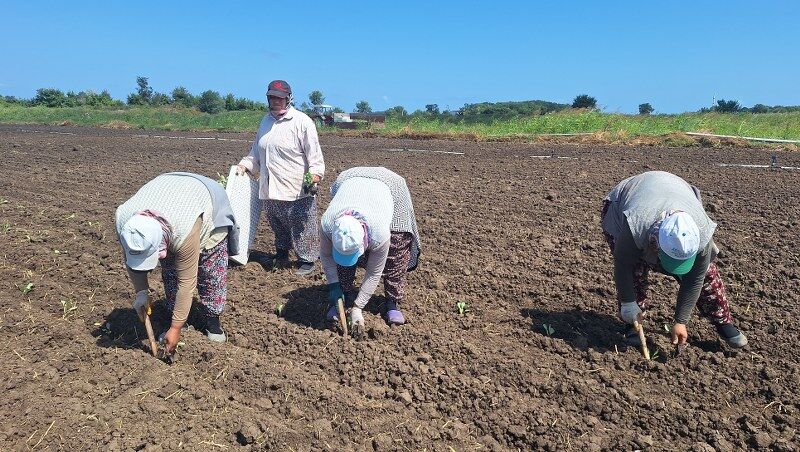 Tarım işçisi Yıldız Çelik de zor şartlarda çalıştıklarını anlatarak, "Sabah 6'da kalkıyoruz, 08.00'de işbaşı yapıyoruz. Akşam 18.00'e kadar çalışıyoruz, 1500 lira yevmiye alıyoruz." şeklinde konuştu.