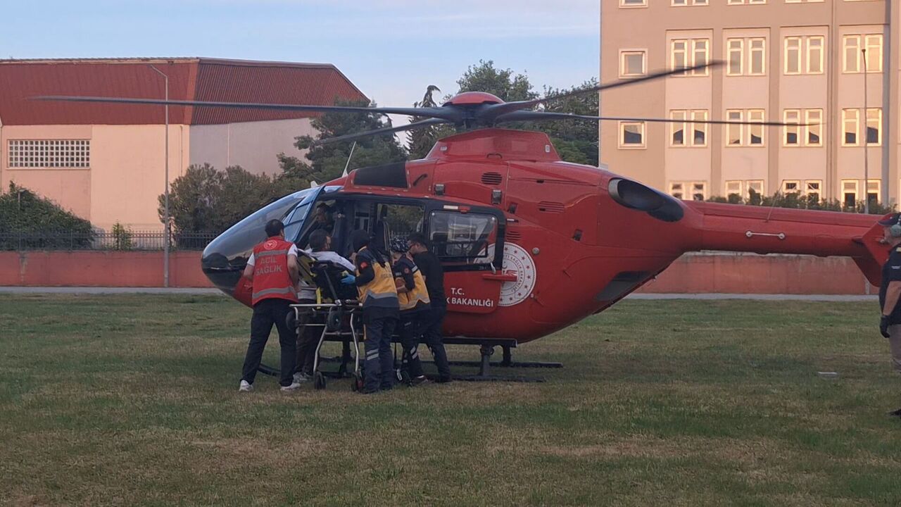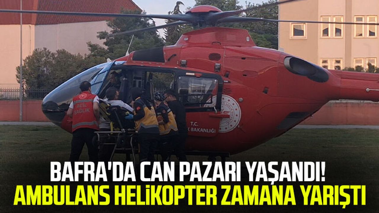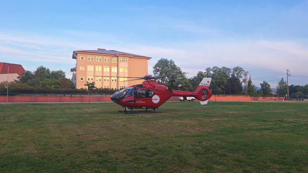 Hüseyin M, Bafra Şehir Stadı'na inen ambulans helikopterle Samsun Eğitim ve Araştırma Hastanesi'ne gönderildi.