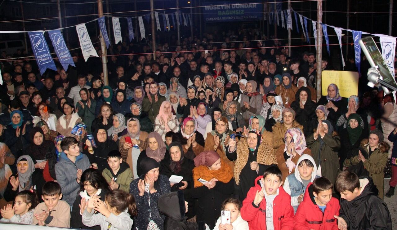 Çarşamba'nın hizmete susadığını kaydeden dündar sözlerini şöyle sürdürdü: “Yaklaşık 50 gündür sahalardayız. 50 gündür Çarşambamızın 143 mahallesi, hizmete susamış ve belediye başkanı Hüseyin Dündar’ı bekliyor. Çarşamba’nın 143 mahallesi 5 yılı boşa geçirdi. Eski Belediye Başkanınız Hüseyin Dündar’ın projeleri doğru düzgün takip edilemedi. Planlı, programlı, hesaplı, kitaplı işler yapılamadı maalesef. Siz beni çok iyi biliyorsunuz. Bu iş parti meselesi, bağımsız aday meselesi değildir. Çarşamba Belediyesi’nin başına, çalışkan, dürüst, düzgün ve gayretli bir belediye başkanını getirme meselesidir. Çarşamba buna inanıyor. 31 Mart’ta bunun kararını vereceğiz.