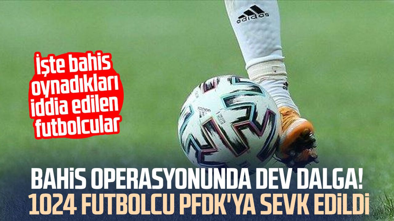 - Türkiye Futbol Federasyonu, 1024 futbolcunun bahis oynadığı gerekçesiyle PFDK’ye sevk edildiğini bildirdi.