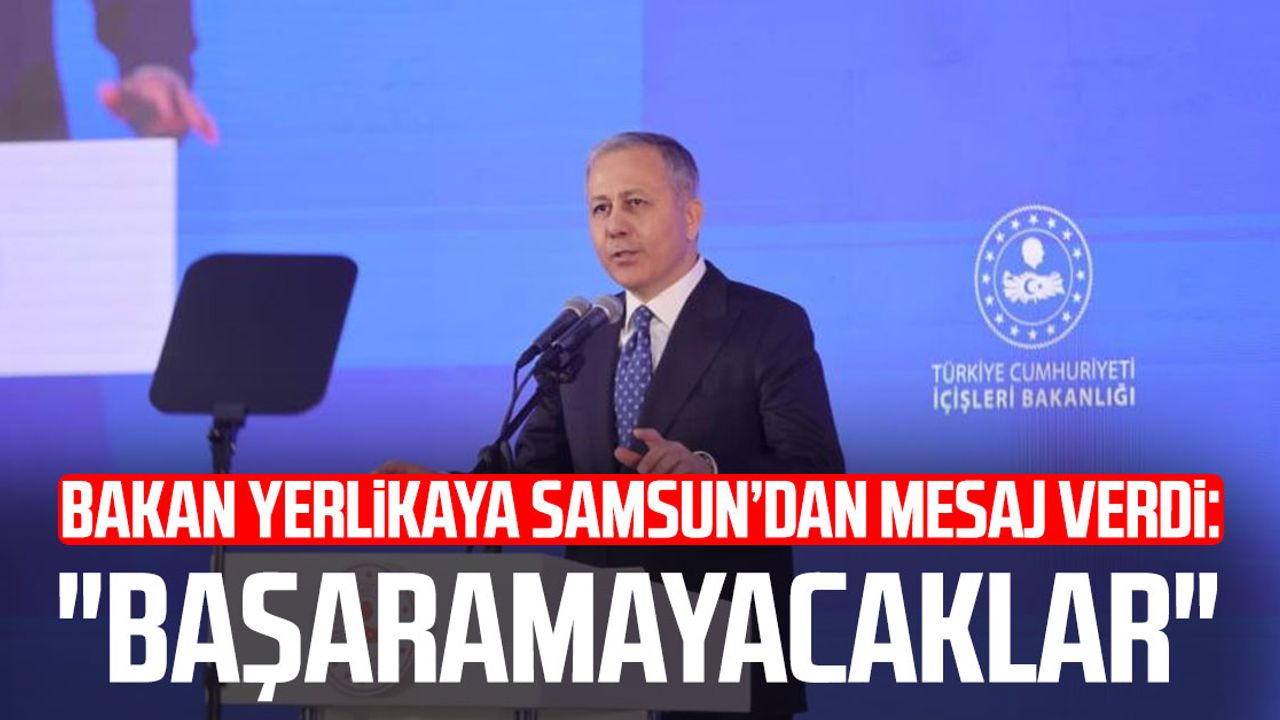 Milletin mayasında kardeşlik, birlik ve beraberlik olduğunu dile getiren Bakan Yerlikaya, bu birlikteliğin silahla, fitneyle ve terörle bozulamayacağını dile getirdi. Yerlikaya, "Milletimizin mayasında kardeşlik vardır, birlik vardır, beraberlik vardır. Bu kardeşlik, bin yıllık birliktelikten süzülüp gelen bir ortak yazgıdır. Bu birlik, silahla bozulamaz, fitneyle parçalanamaz, terörle dağıtılamaz. Önce yedi düvel bir oldular; başaramadılar. Sonra, bizi birbirimize düşürerek kazanacaklarını sandılar. Kardeşi kardeşe vurdurarak, kaleyi içeriden yıkabileceklerini zannettiler. Ama başaramadılar, başaramayacaklar. Sayın Cumhurbaşkanımızın güçlü liderliğinde Terörsüz Türkiye hedefine emin adımlarla ilerliyoruz. Bizi birbirimize düşman eylemek isteyenlere inat, kenetlenmiş şekilde müreffeh yarınlara omuz omuza yürüyoruz. Sayın Cumhurbaşkanımızın sizlere ifade ettikleri gibi; 'Terörsüz Türkiye, fitne duvarlarını yıkmak, kardeşliğimize kurulan sinsi tuzakları bozmak, kavlimizi ve muhabbetimizi tazeleyip ülkemizi çok daha parlak bir istikbale taşımak için tarihi bir sorumluluk üstlenmektir.' Samsun'dan sizlerin huzurunda bir kez daha söylüyoruz, birliğimiz daimdir, kardeşliğimiz ebedidir. Bu vatan bölünmez bir bütündür. Bu yürüyüş büyük ve güçlü Türkiye yürüyüşüdür. Bu yürüyüş huzurun, güvenin, adaletin yürüyüşüdür. Bu yürüyüş; şehitlerimizin emanetini yücelten, gazilerimizin onurunu baş tacı eden bir yürüyüştür" ifadelerini kullandı.