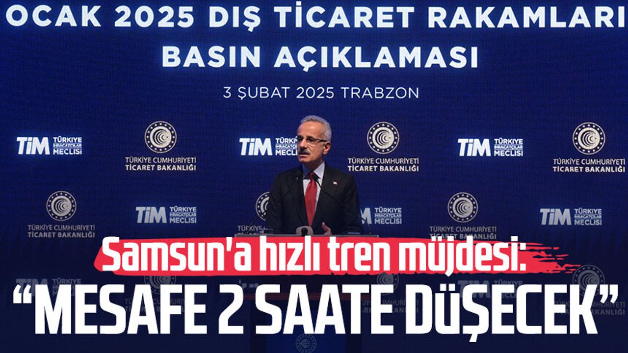 Ulaştırma ve Altyapı Bakanı Abdulkadir Uraloğlu, Türkiye İhracatçılar Meclisi (TİM) Ocak 2025 Dış Ticaret Rakamları Basın Açıklaması programında konuştu. Türkiye’de çok modlu ulaşım bağlantıları sağlamanın yanı sıra, uluslararası koridorlar oluşturarak kıtalar arasında kesintisiz ve kaliteli ulaştırma altyapıları tesis etmek üzere de çok ciddi çalışmalar yaptıklarını anlatan Bakan Uraloğlu, "Trabzon ile Samsun arasını 2 saate düşürecek Samsun-Trabzon-Sarp hızlı demiryolu projemiz ile de Samsun’dan itibaren Ordu, Giresun, Trabzon, Rize ve Artvin olmak üzere tüm kentlerimizi birbirine bağlayacağız” açıklamasında bulundu.