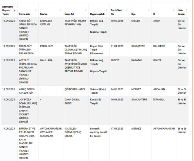 Vatandaşların sağlıklı gıdaya erişmesi için Tarım ve Orman Bakanlığı yaptığı denetimler sonrası uygunsuz olan ürünleri ifşa etmeye devam ediyor.