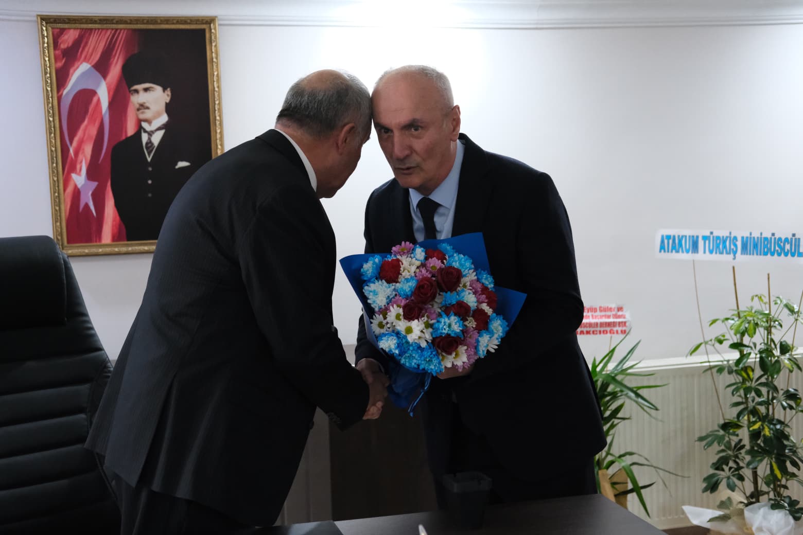 Önceki dönem Samsun Şoförler ve Otomobilciler Odası başkanı Yusuf Saim Erkan'ın Umre'de olması nedeniyle yerine Samsun Şoförler ve Otomobilciler Odası Genel Sekreteri Kenan Aydın, Hacı Eyüb Güler’e çiçek takdim ederek yeni dönemde başarı temennisinde bulundu.
