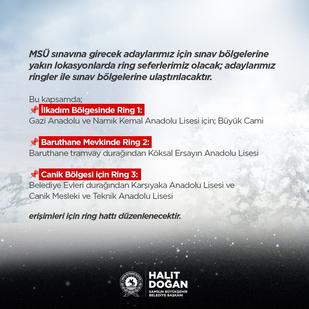 Başkan Halit Doğan, sınav öncesinde tüm adaylara başarı dileyerek, ulaşım konusunda herhangi bir aksaklık yaşanmaması için gerekli tüm düzenlemelerin yapıldığını belirtti. Samsun'daki öğrenciler, ring seferleri ve ücretsiz ulaşım imkanlarıyla sınavlarına rahat bir şekilde ulaşabilecek.
