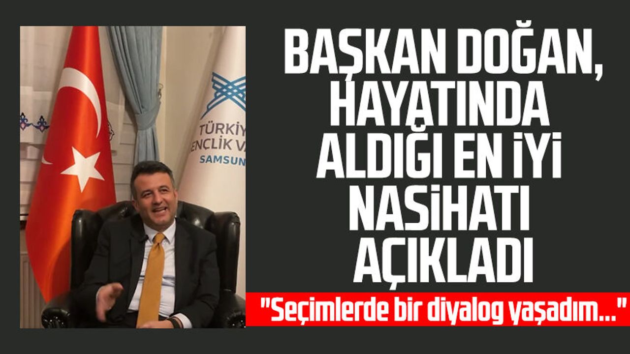 Başkan Doğan, "Hayatınızın en iyi nasihatini kimden aldınız, neydi?" sorusuna "Babamdan, annemden, öğretmenlerimden herkesten almışımdır ama seçimlerde bir diyalog yaşadım. Bir camide namaza durdum orada birisi de namazdan çıktıktan sonra "Ben seni arıyorum 1 haftadır Büyük Cami'ye gelirsin diye orada aradım, göremedim. Bana dedi ki kendine, "Allah'ım beni korktuklarımdan emin, umduklarıma nail eyle" diye dua et dedi. Annem bizi 'Yolda yürürken, komşunun bahçesindeki eriğe bırak almayı, bakma' diye tembihleyerek büyüttü." yanıtını verdi.