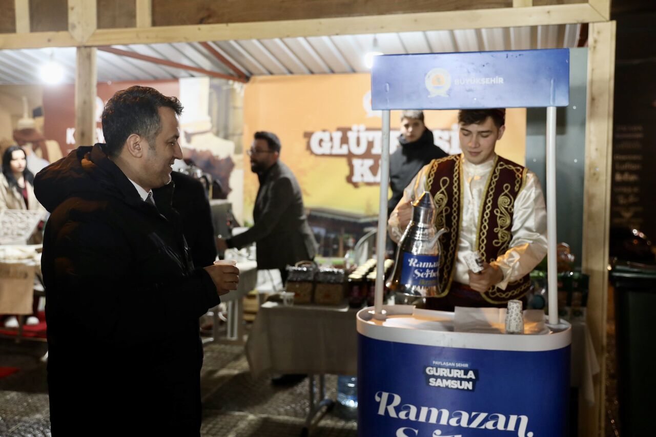 Cumhuriyet Meydanı’nda kurulan Ramazan Sokağı, Ramazan ayı boyunca Samsunluların buluşma noktası olmaya devam ediyor. İftar programlarının yanı sıra çeşitli etkinliklerin de düzenlendiği alanda, manevi atmosferin en güzel şekilde hissedildiği belirtildi. Başkan Doğan, hemşehrileriyle buluşarak Ramazan’ın paylaşma ruhunu yaşadıklarını ifade etti.