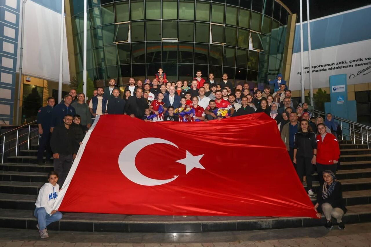 Türkiye’nin ev sahipliği yaptığı 2023 IFMA Gençler Dünya Muaythai Şampiyonası’nda üstün performans sergileyen Canikli milli sporcular, madalyaları tek tek topladı. Şampiyona boyunca sergilediği mücadeleyle karşılaştığı tüm rakiplerini saf dışı bırakan Canik Belediyespor Kulübü milli sporcusu Mustafa Eren Doğan dünya şampiyonu olurken, Beyzanur Durmuş ikinci, Berkay Sezgin Demir ise üçüncü oldu. İlçeye gelen sporcular ve antrenörleri Cihan Yurt büyük bir coşku ile karşılandı. Ardından sporcular, madalyaları ile Canik Belediye Başkanı İbrahim Sandıkçı'yı ziyaret etti.