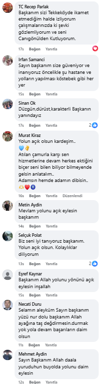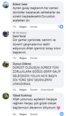 Başkan Candal’ın paylaşımı kısa sürede çok sayıda yorum aldı. Vatandaşlar, samimi duruşunu takdir ettiklerini belirterek destek mesajları paylaştı. Yapılan yorumlarda, “Zor şartlar içinde özverili çalışmalarınızı takdir ediyorum”, “Dürüst olduğunuz sürece tüm zorlukların üstesinden gelirsiniz”, “Çalışmalarınızdaki şevki görüyor ve sizi gönülden kutluyorum” gibi ifadeler yer aldı. Başkan Candal’ın hem içten açıklamaları hem de vatandaşın sahip çıkan yorumları, Tekkeköy’de oluşan karşılıklı güven ve dayanışma ortamına işaret etti.