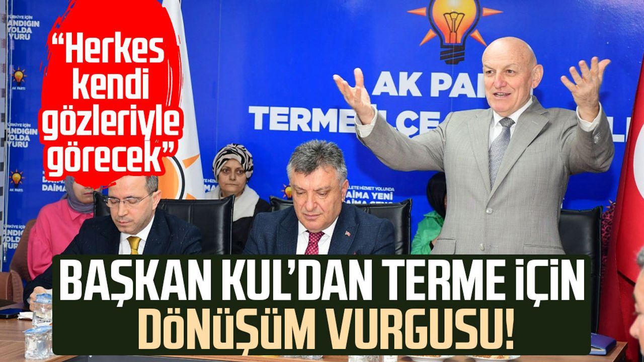 Yürütülen tüm projelerde ortak aklın ve toplumsal faydanın esas alındığını kaydeden Kul, "Bu şehir için kişisel menfaat değil, gençlerimizin ve çocuklarımızın geleceği için çalışıyoruz. Terme’yi ortak akılla, dayanışmayla büyüteceğiz. Amacımız; modern, planlı, doğayla barışık ve yaşanabilir bir Terme oluşturmak. Terme’nin önünü kapatmak değil, tam tersine; geleceğe güvenle bakan bir şehir haline getirmek istiyoruz" diye konuştu.