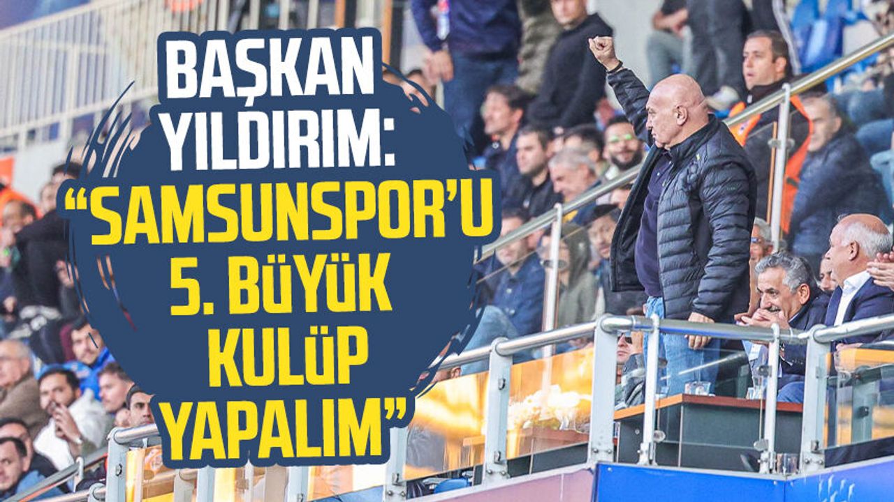Yıldırım, desteklerinden dolayı Samsun Büyükşehir Belediye Başkanı Halit Doğan’a teşekkür ederek, "Halit başkan gelir gelmez yaptığı yatırımlar ile Samsunspor’a destek olmuştur. Çünkü gerçekten Samsun şehri bunu hak ediyor. Şimdiye kadar, diğer belediye başkanlarımızda bir şeyler yaptı. Ama açık söyleyeyim, Halit Başkan gibi hiç kimse yapmadı. İyi ki var. Halit Başkan ile birlikte takımı Avrupa'ya götürmek istiyorum. Buradan söz veriyorum. Şehirde bir yer ver oraya 7/24 yaşayan yeni bir stadyum yapalım. Avrupa’ya örnek olalım. Kalıcı olalım. Samsunspor’u Türkiye’nin 5. büyük kulübü yapalım. Ben bu sözü verdim. Bundan da geri dönmek istemiyorum. Bu şehri futbolda değil, yaşam olarak, ekonomi olarak Süper Lig'e çıkaralım. Siz yeter ki bize destek olun sahip çıkın. Ben de ekibimle, taraftarımızla gerekeni yapalım. Samsun Türkiye'de örnek olsun" dedi.