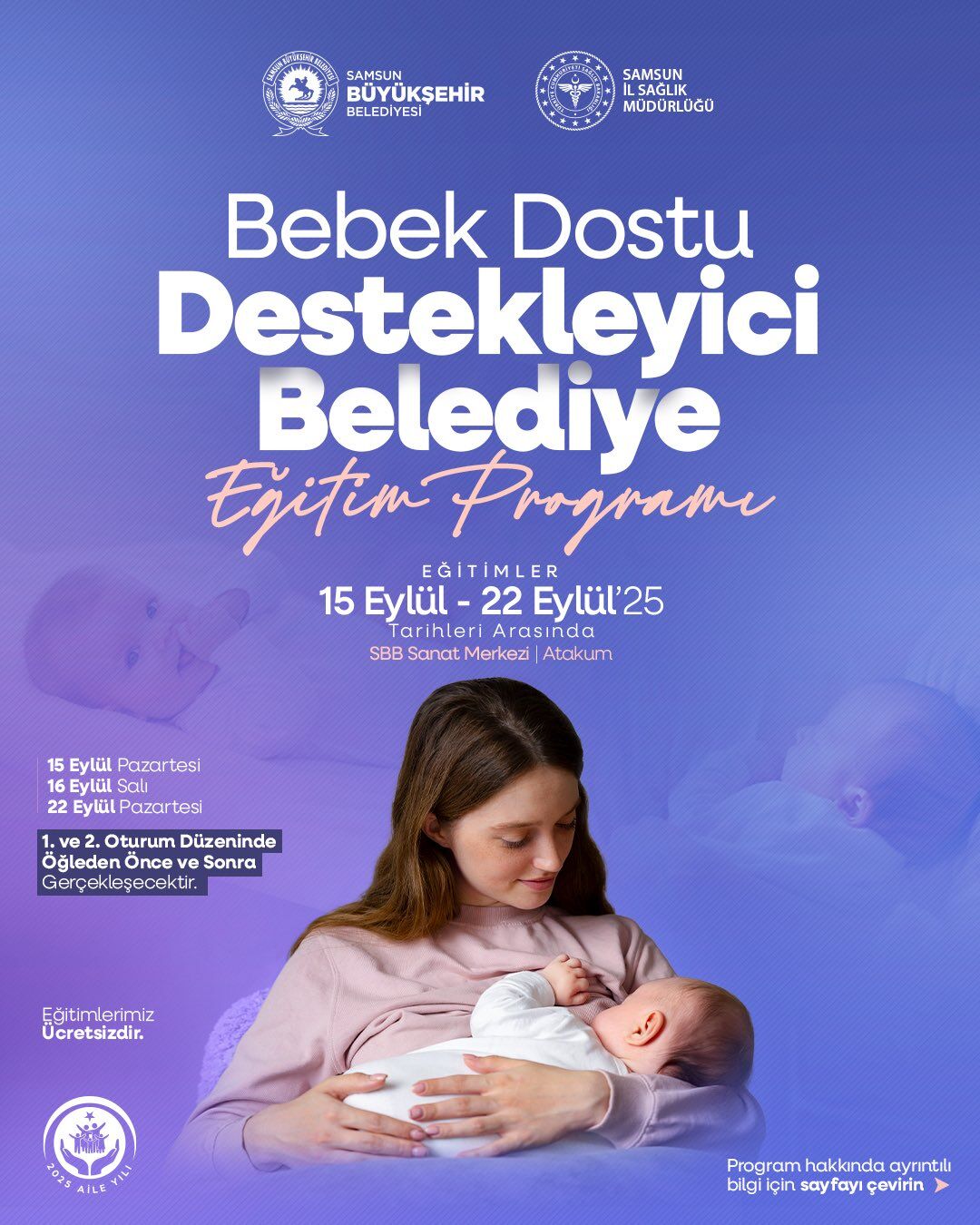 Samsun Büyükşehir Belediyesi, “destekleyen şehir” vizyonu doğrultusunda toplumun tüm kesimlerine dokunmayı amaçlayarak, anne ve bebek sağlığını geliştirecek projelere önem veriyor. Bu eğitim programı da belediyenin sosyal sorumluluk anlayışının önemli bir parçası olarak değerlendiriliyor.