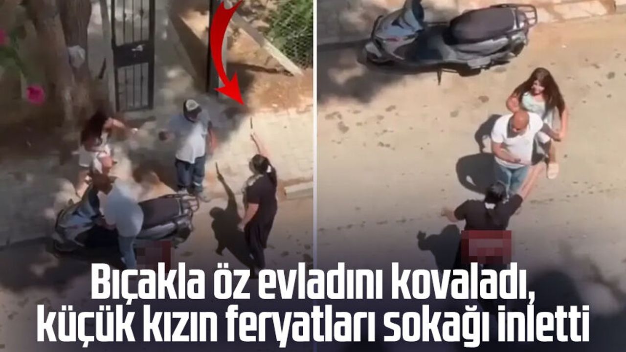 Gözyaşları içinde annesinden kaçan küçük kızın feryatları sokağı inletti. Kadını bir türlü sakinleştiremeyen adam, küçük kızı motoruna bindirerek oradan uzaklaştırdı. Olay bir kişinin cep telefonu kamerasına yansıdı.
