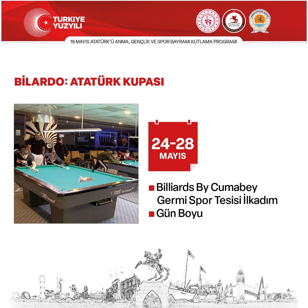 19 Mayıs Atatürk’ü Anma, Gençlik ve Spor Bayramı etkinlikleri çerçevesinde Bilardo Atatürk Kupası, 24-28 Mayıs tarihleri arasında Samsun’da düzenlenecek.