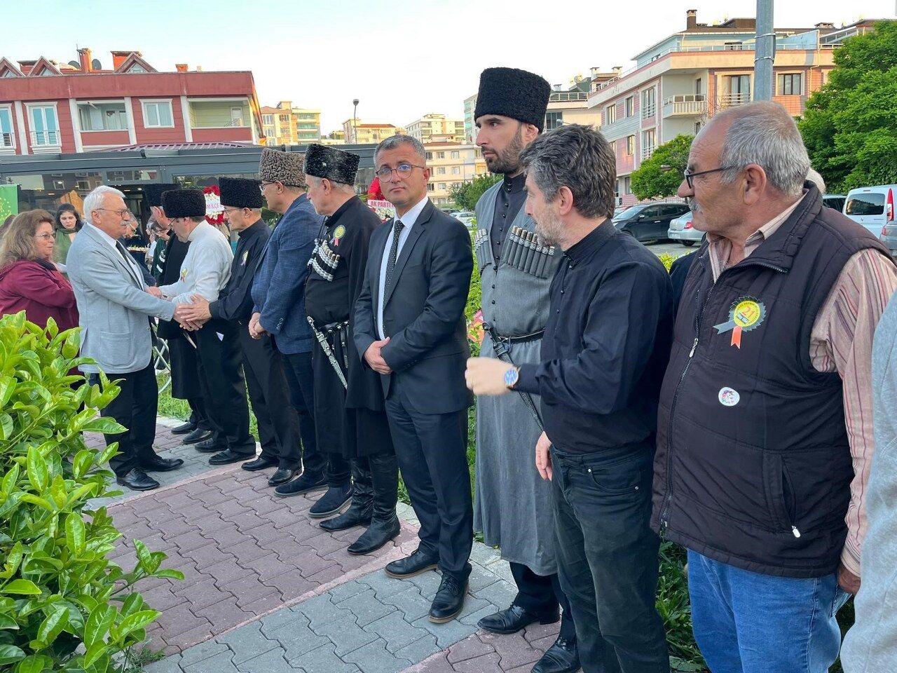 Törende saygı duruşu yapılarak, taziyeler kabul edildi. Sürgün ve soykırımın Çerkes tarihinde çok önemi bir yıl dönümü olduğuna vurgu yapan Adige Kültür Derneği Başkanı Abdülkadir Özyılmaz, "Karadeniz’in karanlık sularında hayatlarını kaybeden, sürgün yollarında acı çeken atalarımızı rahmetle, minnetle ve derin bir hüzünle anıyoruz. 1864 yılı, sadece bir savaşın değil; bir halkın hafızasında silinmez yaralar açan büyük bir yıkımın, bir soykırımın tarihidir. Yaklaşık bir buçuk milyon Çerkes anayurtlarından sürüldü, yüz binlercesi yollarda hastalık, açlık ve soğukla hayatını kaybetti. Kimi anneler çocuklarını Karadeniz kıyılarında toprağa veremeden bırakmak zorunda kaldı, kimi yaşlılar evlerinden koparılıp bilinmezliğe sürüldü. Bu kara gün, bizim için sadece geçmişin bir acısı değil; aynı zamanda kimliğimizin, mücadelemizin ve var oluşumuzun temelidir. Unutmadık; çünkü acılar hâlâ tazedir. Unutmadık; çünkü sürgün edilenlerin ayak izleri hâlâ Karadeniz’in kıyılarında yankılanmaktadır. Her birimizin yüreğinde bir eksiklik, her ailemizin hafızasında bir acı hatıra vardır. Bu sürgün sadece bedenlerimizi değil, ruhlarımızı da yaralamıştır. Bizler, Adige Kültür Derneği olarak bu büyük acının 161. yılında, tarihimizi unutmadığımızı ve unutturmayacağımızı haykırıyoruz. Atalarımızın çektiği acıları gelecek nesillere aktarmak, sürgünün oluşturduğu kültürel ve sosyal tahribatı onarmak ve halkımızın haklı davasını dünya kamuoyuna duyurmak boynumuzun borcudur" dedi.