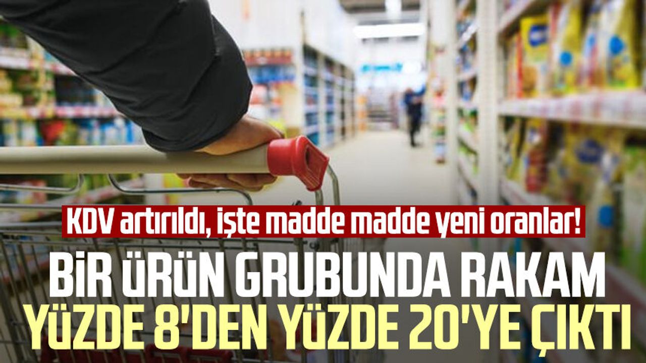KDV oranı yüzde 8 olan sabun, şampuan, deterjan, dezenfektanlar, ıslak mendil, tuvalet kağıdı, kağıt havlu, kağıt mendil ve peçete ürünlerinde ise KDV oranı yüzde 20'ye çıkarıldı.