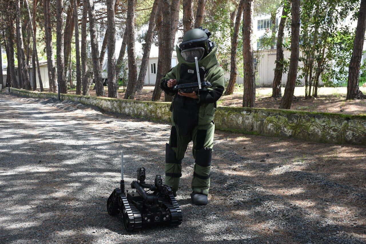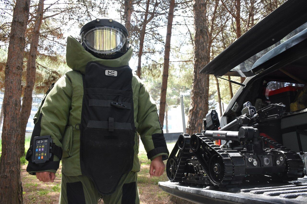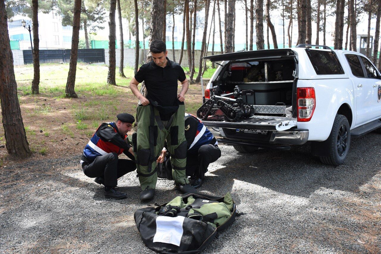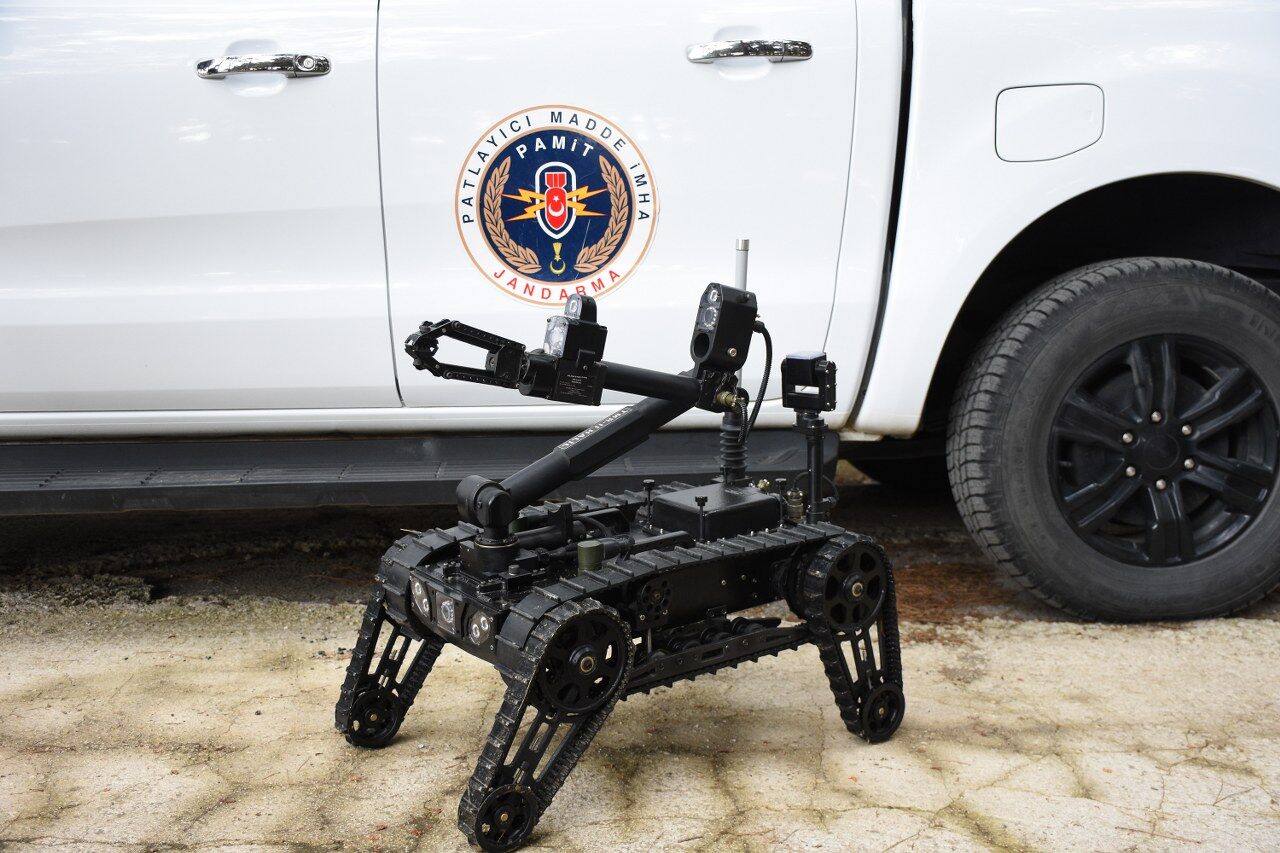 Patlayıcı Madde İmha Uzmanı Astsubay Kıdemli Çavuş Şuayip Karakaya, İl Jandarma Komutanlığı Kriminal Şube Müdürlüğü Patlayıcı Madde İmha Timi olarak suç teşkil eden olaylarda adli makamlar tarafından verilecek görevler doğrultusunda patlayıcı madde olayına müdahale ederek olay yeri incelemesini yaptıklarını söyledi. Patlayıcı madde olaylarında kullandıkları malzemeler arasında TMR-II Halil Bomba Uzaktan Müdahale Aracı'nın da yer aldığını belirten Karakaya, "Araç tamamen yerli ve milli. Bomba uzaktan müdahale aracı, patlayıcı madde ve şüpheli cisimlere müdahale esnasında keşif ve zararsız hale getirme amacıyla kullanılmaktadır. Kamu düzeninin korunması, vatandaşlarımızın can ve mal güvenliğinin sağlanması için sahip olduğumuz ekipmanlar sayesinde etkin güvenilir ve profesyonel müdahaleler gerçekleştirmekteyiz." dedi.