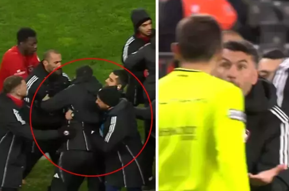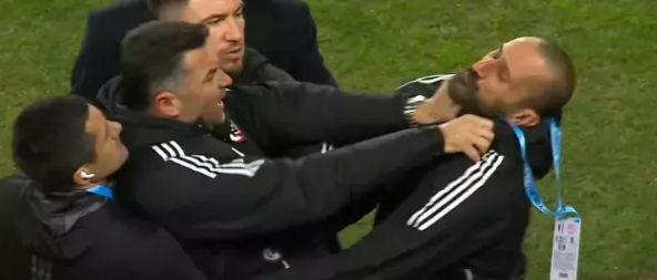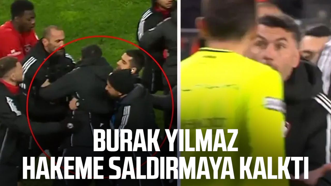 Sinirlerine hâkim olmakta zorlanan Burak Yılmaz’ı yardımcıları güçlükle sakinleştirmeye çalışırken, genç teknik adamın sık sık hakemlere doğru yönelmeye çalıştığı ve kendisini tutan yardımcılarına tepki gösterdiği anlar kameralara yansıdı.