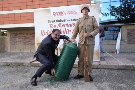 Uğurlama töreni öncesinde Seyid Onbaşı’nın Çanakkale Savaşı’nda kaldırarak topa yerleştirdiği 276 kiloluk merminin aynı ağırlıktaki benzerinin olduğu alan hem protokol hem de programa gelenlerin dikkatini çekti. Sırayla mermiyi yerinden kaldırmaya çalışan protokol ve meraklılar, bunda muvaffak olamadılar. O anlar ise ilginç görüntüler oluşturdu.